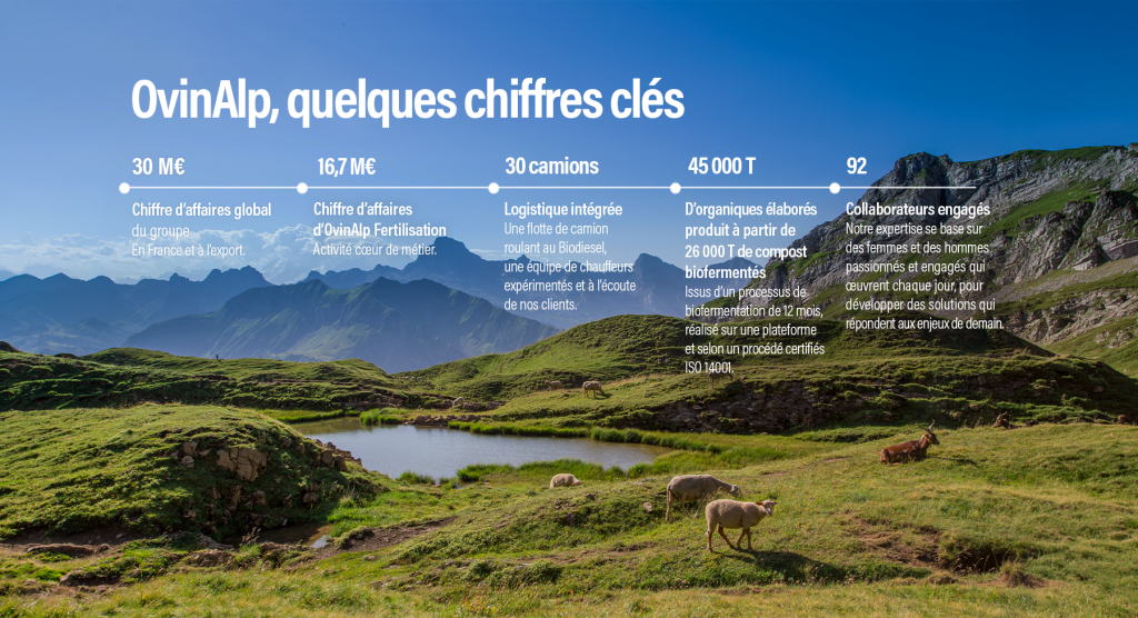 • En 2005, OvinAlp devient la première entreprise en France à créer une plateforme de biofermentation solide certifiée ISO 14001, avec un processus d’hygiénisation rigoureux. Cette dynamique se poursuit avec la création du pôle Logistique en 2010, puis du pôle Recherche & Innovation en 2012.