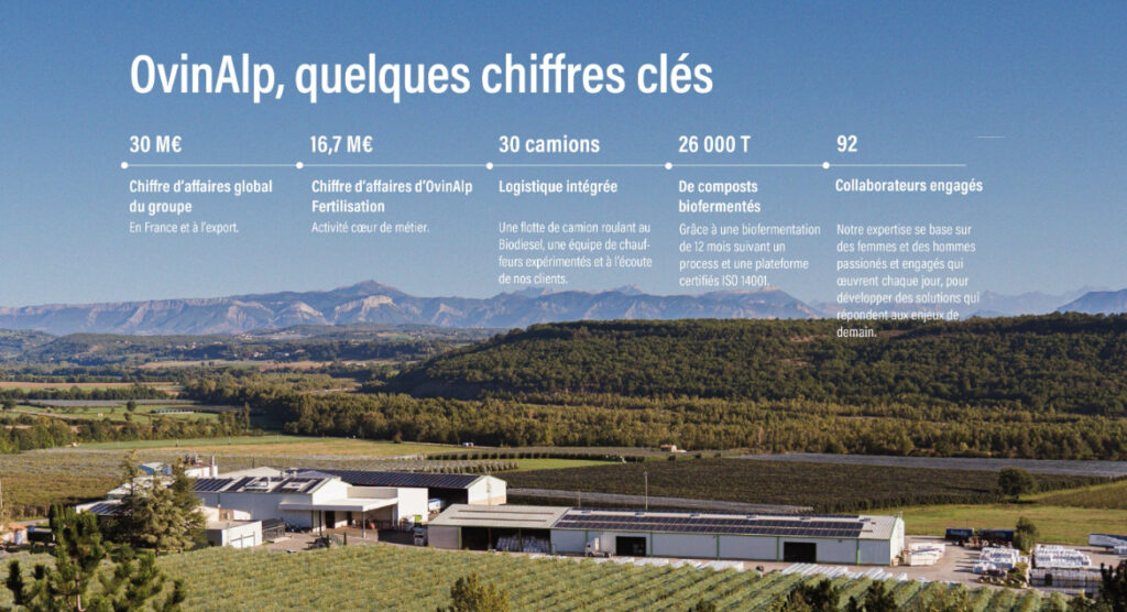 • En 2005, OvinAlp devient la première entreprise en France à créer une plateforme de biofermentation solide certifiée ISO 14001, avec un processus d’hygiénisation rigoureux. Cette dynamique se poursuit avec la création du pôle Logistique en 2010, puis du pôle Recherche & Innovation en 2012.