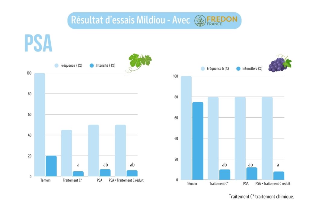 Les essais menés avec la FREDON (2023–2024) montrent des résultats concrets. Le PSA intégré dans un programme présentant -25% d’IFT par rapport à une modalité de référence permet une efficacité équivalente à un programme 100% chimique. Les rendements restent stables. Les vignes gagnent en résilience. Ces données confirment l’intérêt du produit dans une stratégie de réduction des phytosanitaires.