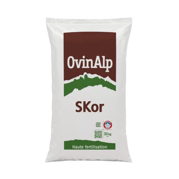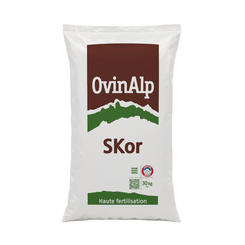 SKor est un engrais organo-minéral NPK 5-2-8 spécialement formulé pour accompagner les cultures exigeantes dès leur redémarrage au printemps. Il est composé de fumier de moutons sélectionné dans les Alpes (IGP Sisteron), composté pendant 12 mois selon un process certifié ISO 14001, et complété par des pulpes de fruits (raisins et olives), des protéines animales transformées, du sulfate de potassium et de l’oxyde de magnésium.